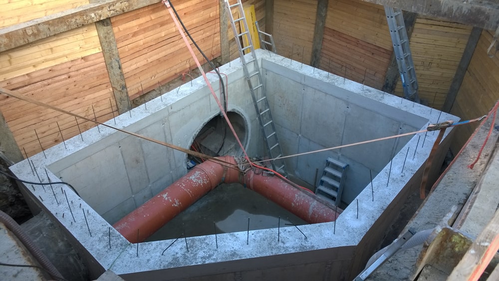 - Neubau eines Pumpwerkes DN 2000, Tiefe 5,00 m, mit PE-Auskleidung